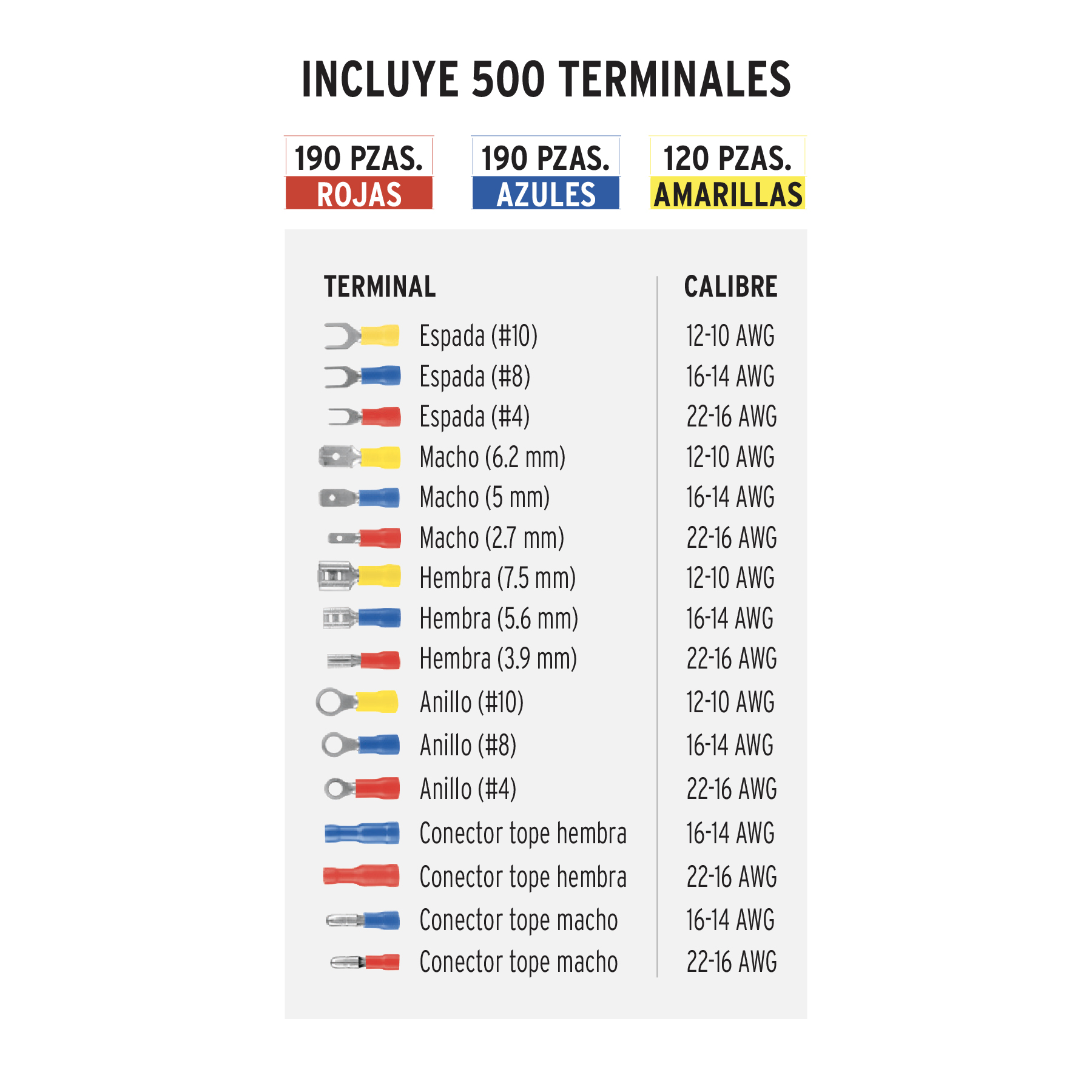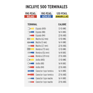- Para crimpar terminales de cable, calibres 24 a 14 AWG