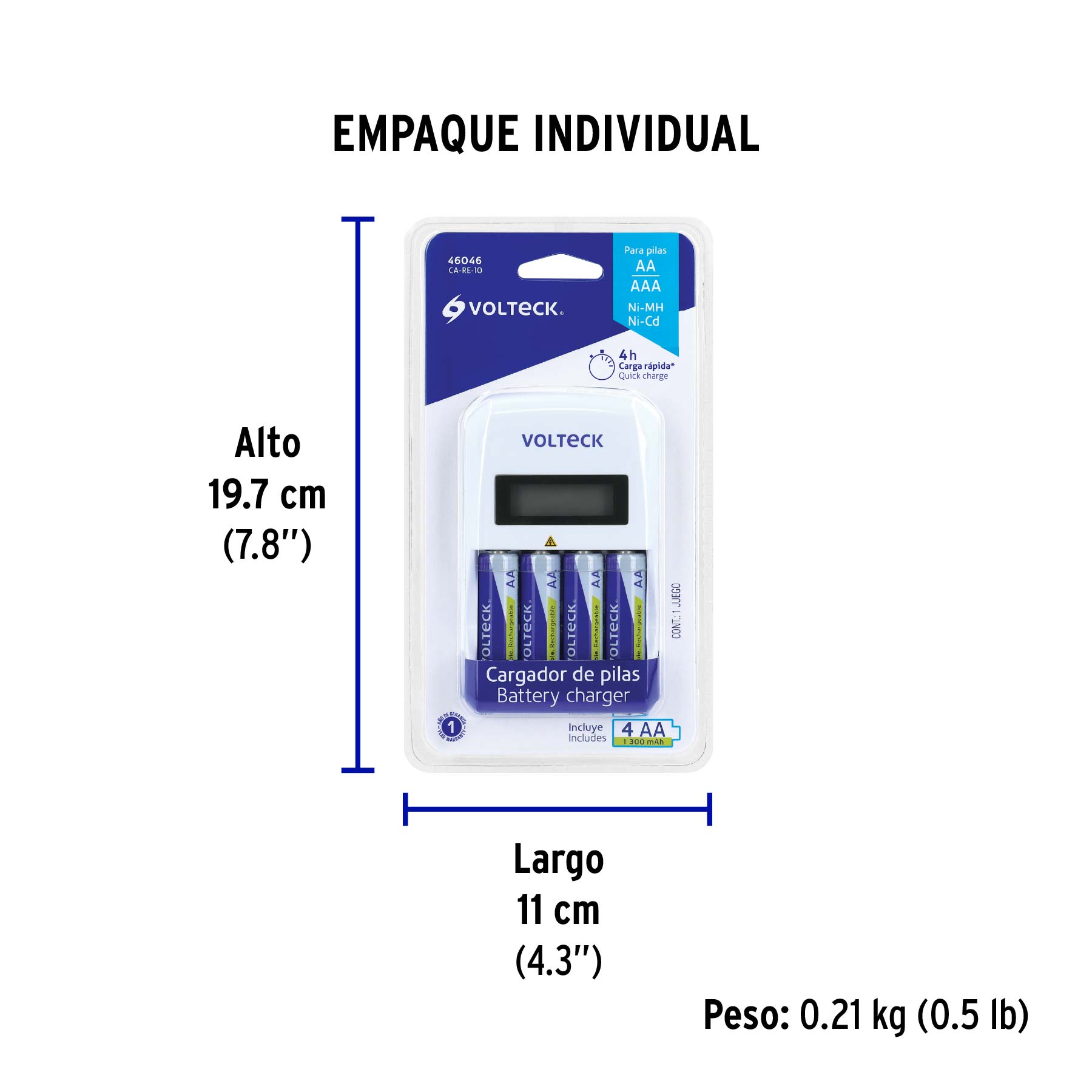 Cargador Rápido de pilas, AA, AAA, incluye 4 pilas AA, VOLTECK