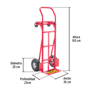 - 2 Ruedas neumáticas de caucho con rin de acero y 2 rodajas giratorias de polipropileno