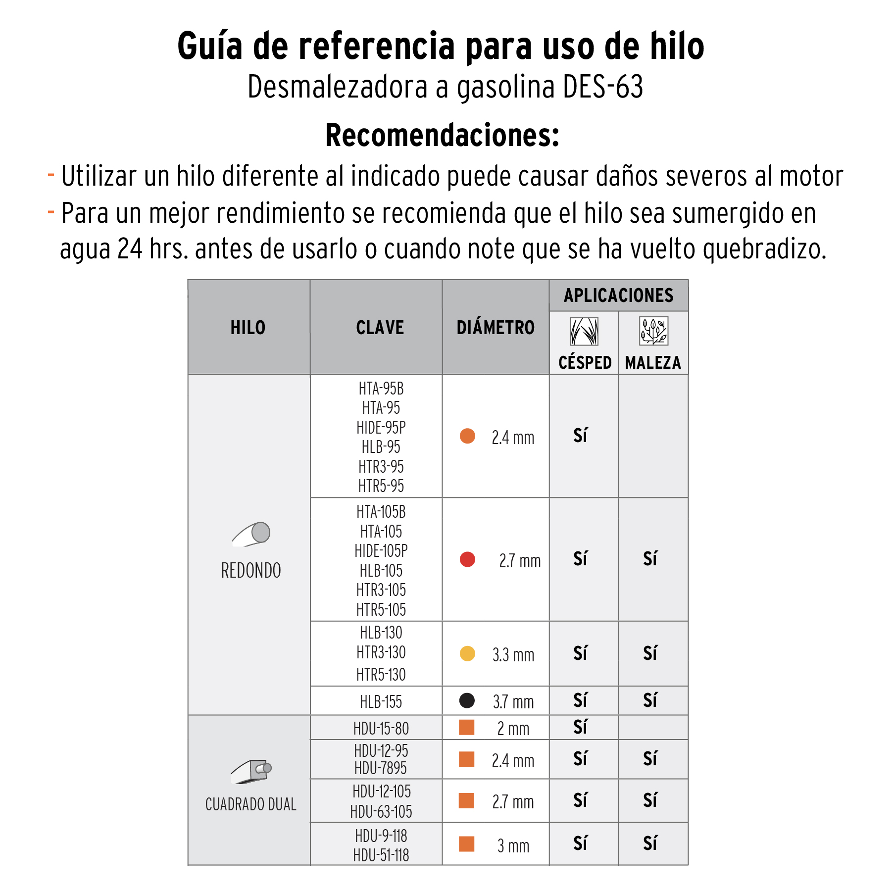 - Motor de 3 HP a 2 tiempos (materiales internos en aluminio al alto silicio para mayor tiempo de vida útil)