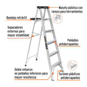 - Doble refuerzo en peldaños inferiores para mayor resistencia