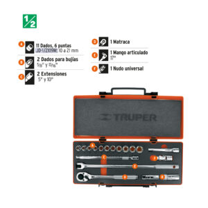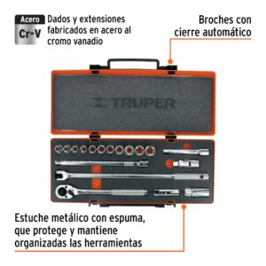 - Estuche metálico con espuma que protege y mantiene organizadas las herramientas