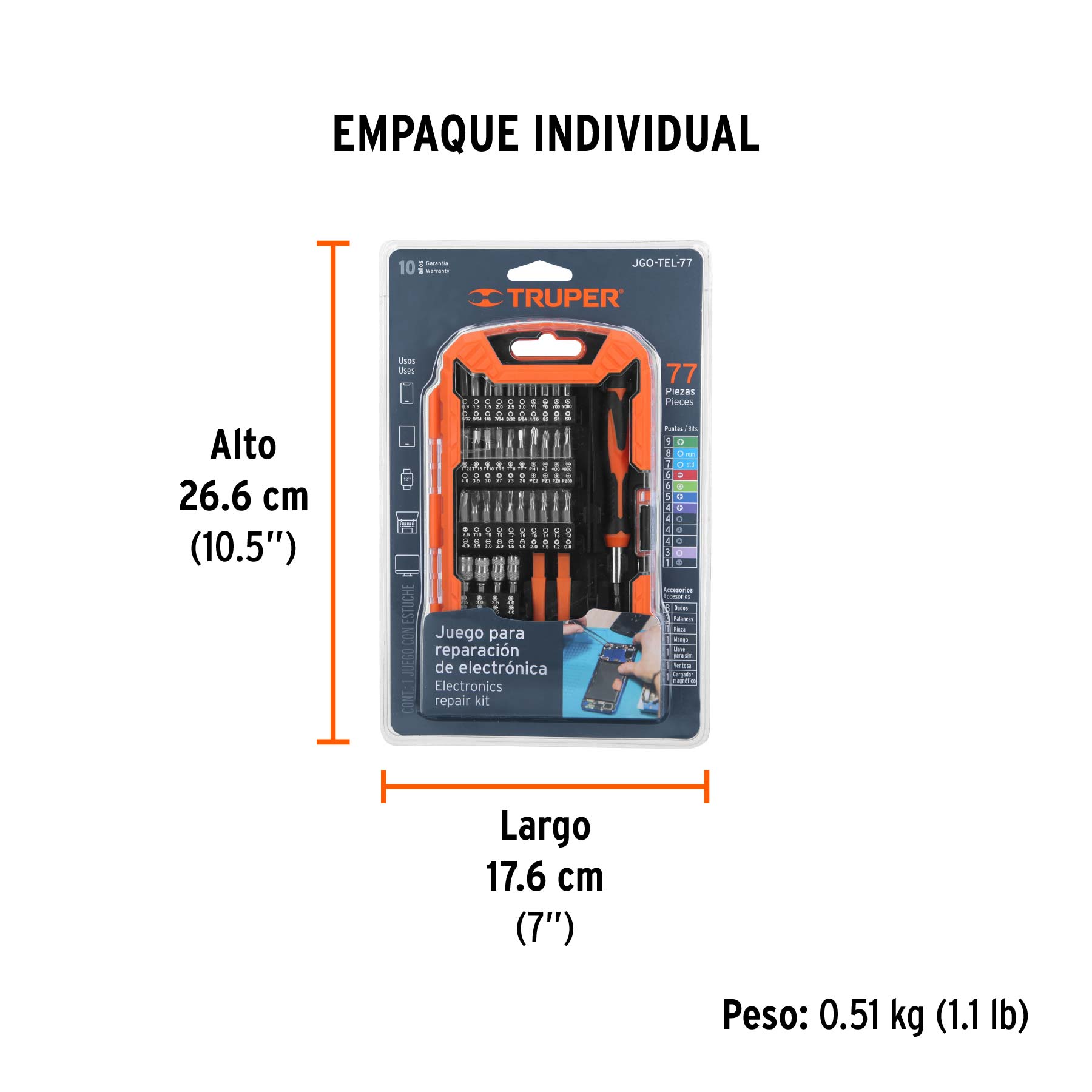 - Puntas de acero al cromo vanadio 2X más resistente al desgaste que el acero al carbono